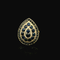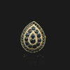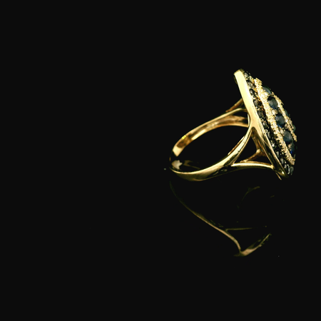 A highly distinctive Sapphire and Diamond Estate Fashion Ring, crafted in 14K Yellow Gold, features 1.00ct. T.W. Apx. of Round Cut Natural Blue Sapphires. There are also .33ct. T.W. of bright white Diamonds with SI1-I1 clarity and G-H color in an alternating Pear shape. Embellishing the outer edge of the Ring are .75ct. T.W. of Round Brilliant Cut Black Diamonds. You can see this beautiful Estate Fashion Ring in our Tampa store with a retail price of $3,495.